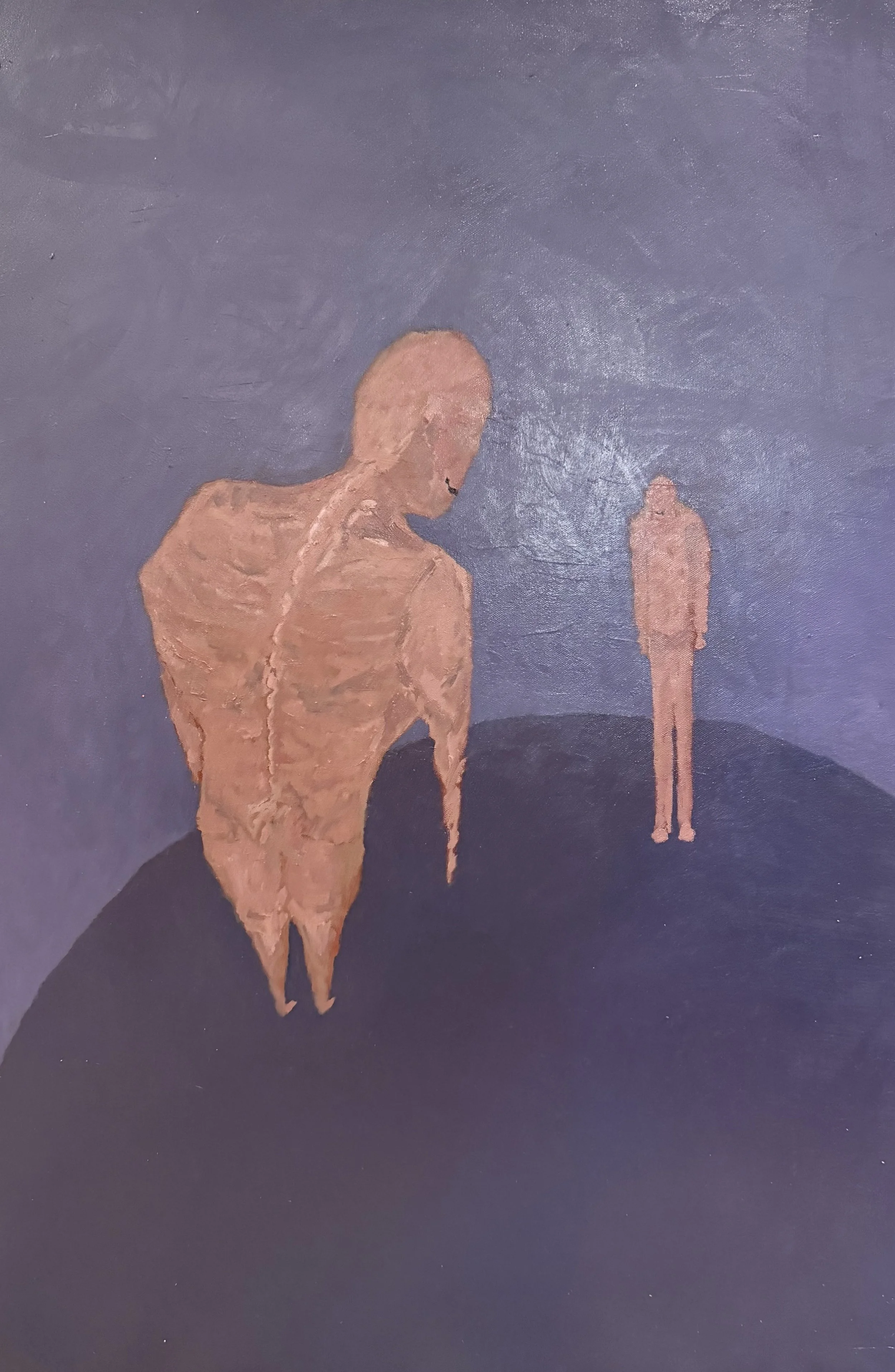 “الأنا العليا“oil on canvas100x80cmthe feeling when you have to act fine for the person infront of you even though you went through hell and back, and the person infront of you do the same.typical human interaction.